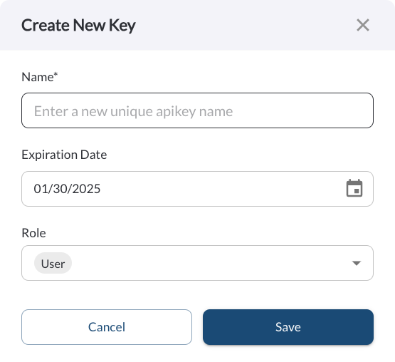 The Add or Edit API Key functionality allows you to create new API Keys or update existing
