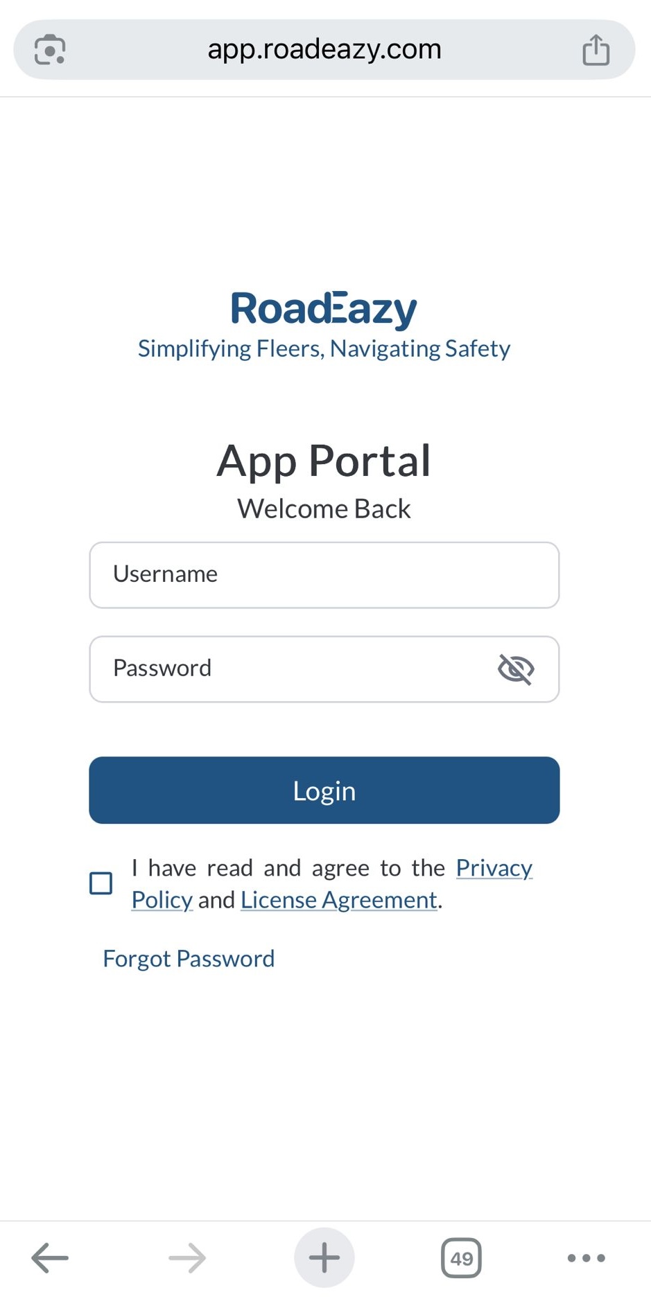 - Open the RoadEazy Fleet Portal.