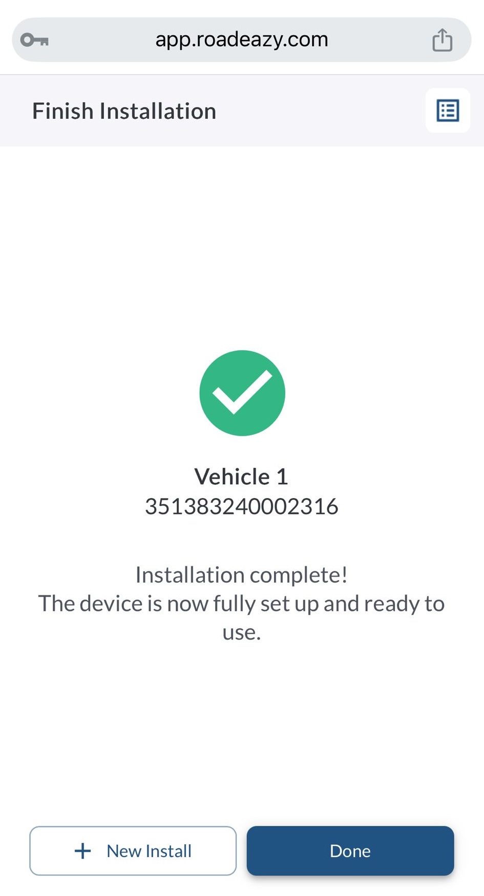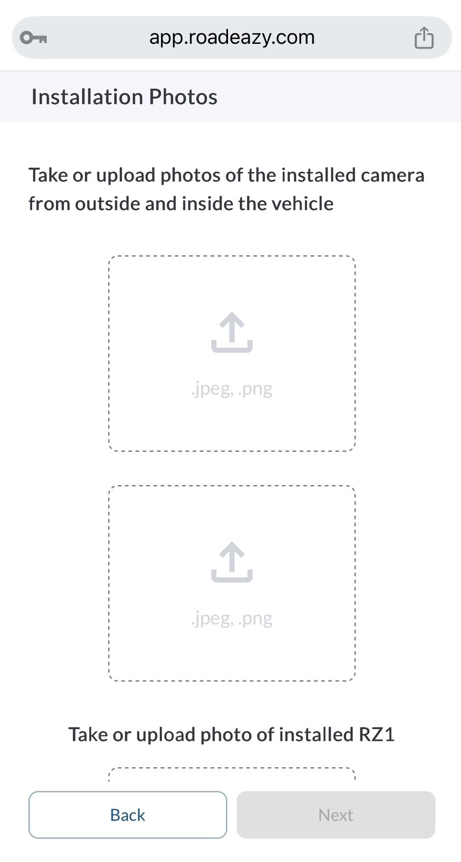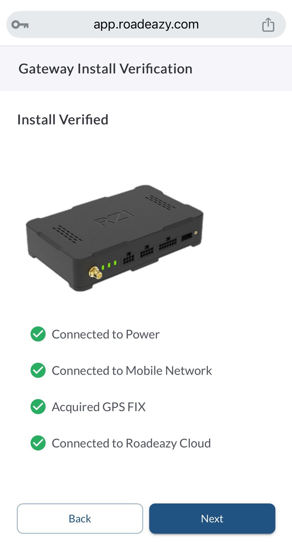 Once the RZ1 device is installed and powered on, you’ll complete the setup using the Installation Wizard in the Roadeazy Fleet App. This process links the device to a specific vehicle, checks system health, and finalizes camera alignment.