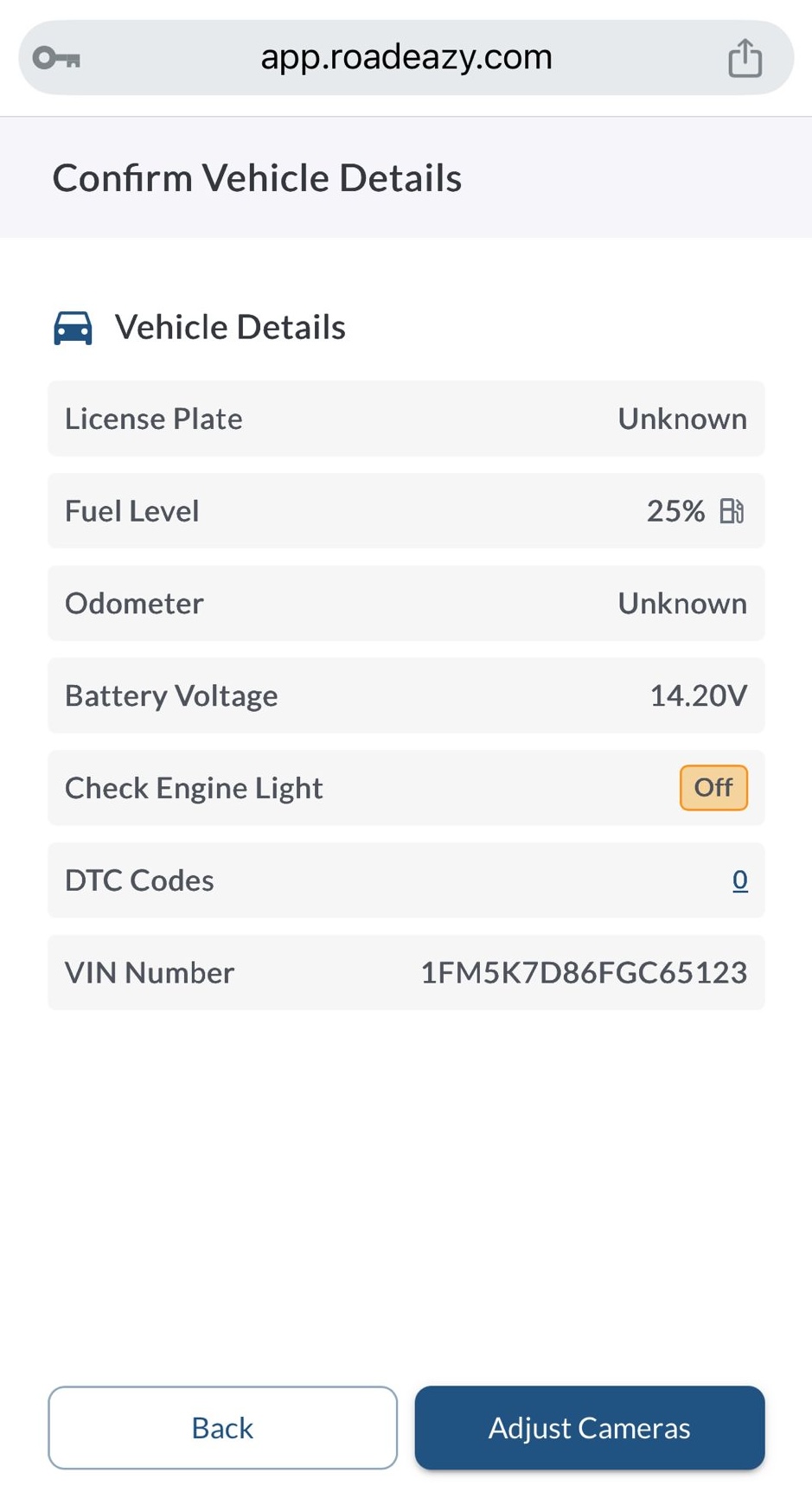 VIN Number – Ensure the correct Vehicle Identification Number (VIN) is displayed.