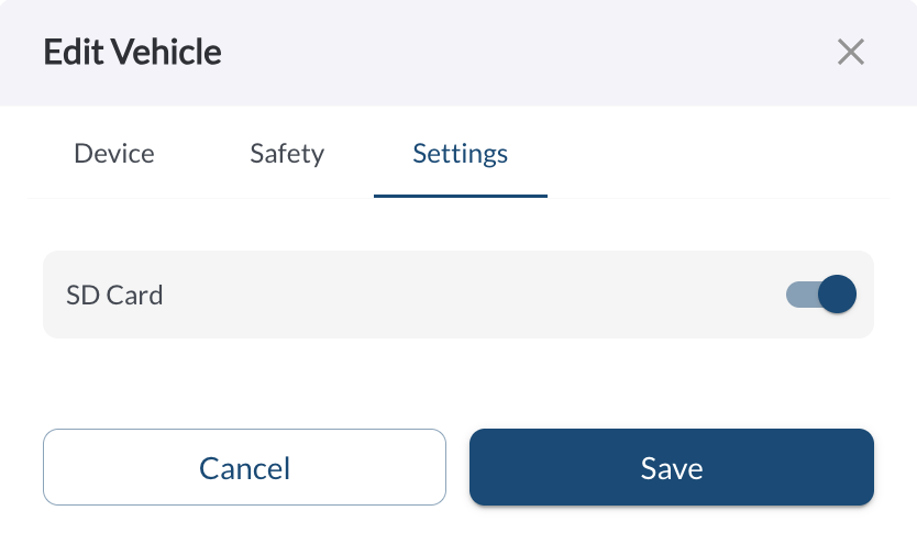 Inside the vehicle’s profile, click on the Settings tab. - Toggle Enable SD Card Recording