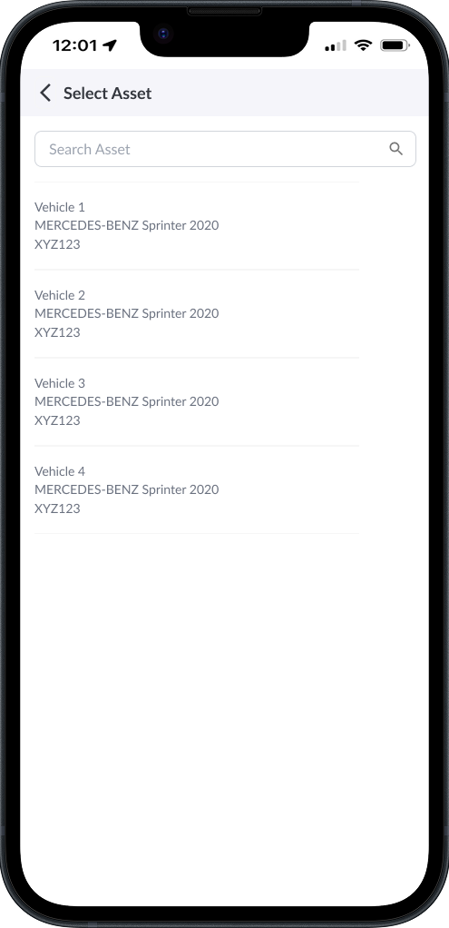 Use the Search Asset screen to find your vehicle.