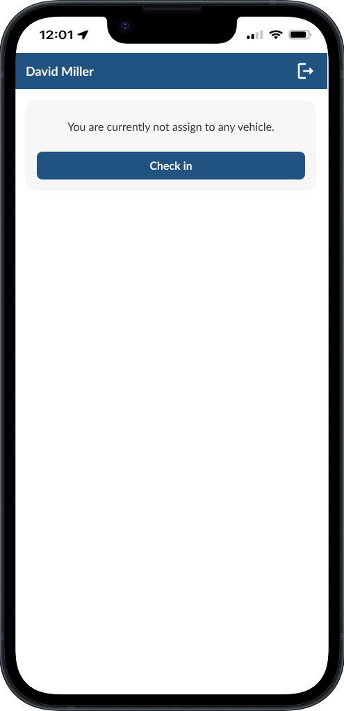 The Home Page will update to show your active vehicle assignment. You are now checked in.
