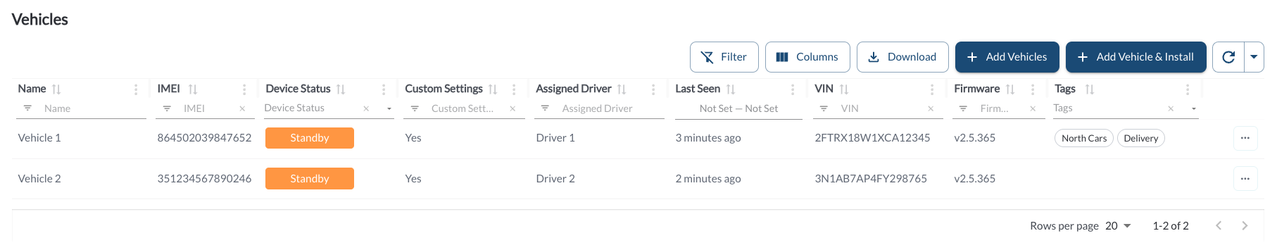 We’ve added a new Custom Settings column to the Vehicles page. This shows a simple Yes/No flag so you can quickly identify if a vehicle has settings that override the fleet defaults.