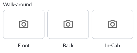 Walk-Around Inspection - If your fleet manager has enabled the walk-around inspection, you’ll be prompted to attach photos of the Front, Back, and In-Cab areas of the vehicle. Use the camera icons to attach the photos.